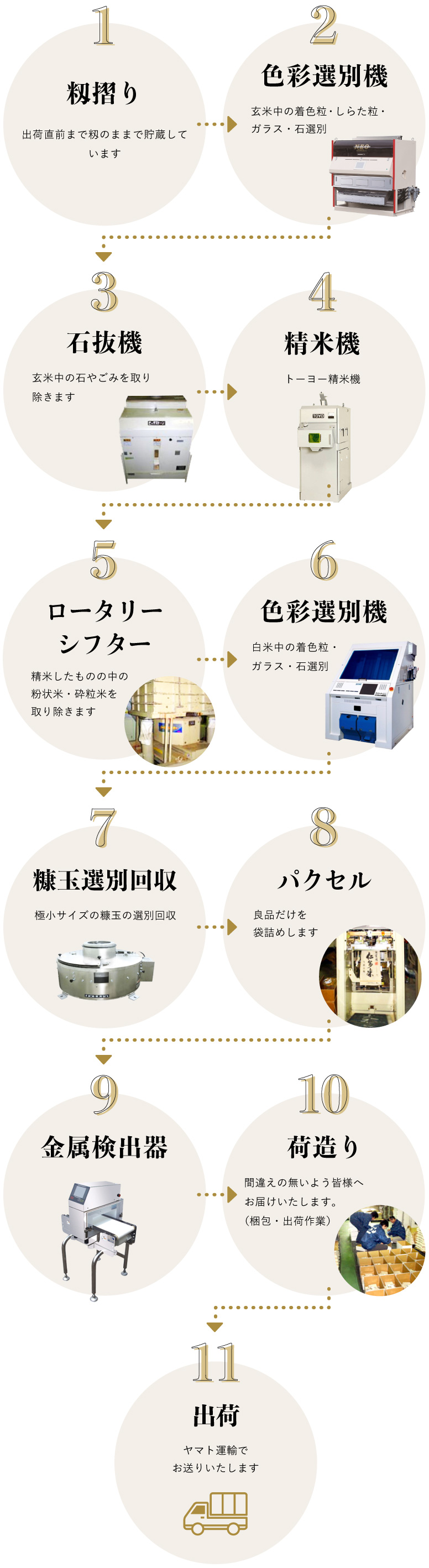 商品カテゴリー 令和7年産出雲國仁多米 令和7年産特別栽培米 令和7年産出雲國仁多米玄米 令和7年産特別栽培米玄米 仁多米宅配ギフト券 仁多米バラエティーセット 甘酒セット 定期購入 奥出雲特産品・その他 収穫からお届けまで 「出雲国仁多米」は皆様においしく召し上がっていただくために籾貯蔵、出荷直前精米してお届けしている新鮮なお米です。 集荷から低温貯蔵するまで 出荷するまで(籾摺り~出荷)